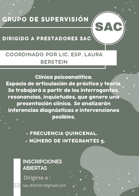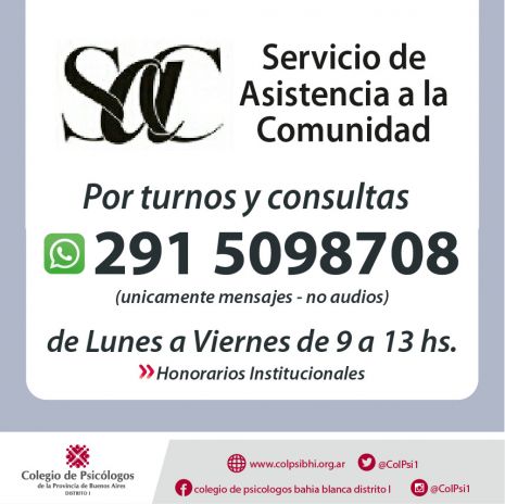 Visto y considerando la creciente demanda de atención en el área de salud mental sobre todo en la población de bajos recursos económicos, el Colegio de Psicólogos de la Provincia de Buenos Aires dispone implementar un Servicio de Atención Psicológica Comunitaria (SAC).