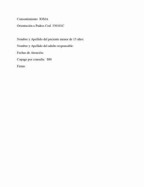 > Se debe presentar el consentimiento que se adjunta al presente mail con los datos solicitados del paciente y código de práctica.